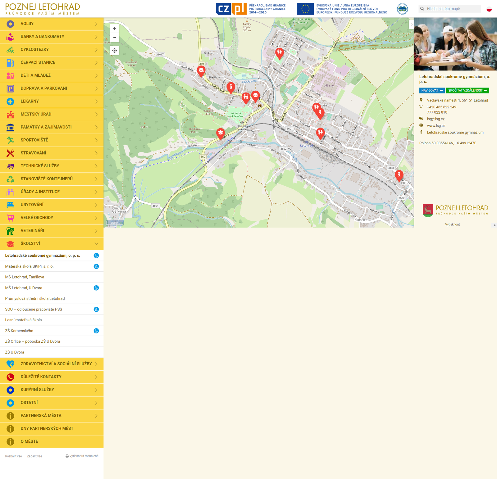 • Projekt mapového průvodce pro města a obce, v tomto případě pro město Letohrad. Mapový průvodce je rychlý, přehledný a uživatelsky přátelský informační nástroj, který občanům či návštěvníkům města umožní snadno a doslova během vteřiny zjistit místa, která hledají. Má rozsáhlé možnosti zobrazení kategorií, podkategorií i detailů jednotlivých bodů. Zobrazuje mimo jiné i bezbariérovost objektů apod. Systém má vlastní přehlednou administraci, díky které pracovníci infocenter mohou rychle spravovat databázi bodů. K dispozici je i mobilní verze průvodce. Společný projekt v kooperaci s reklamní agenturou TAH.
